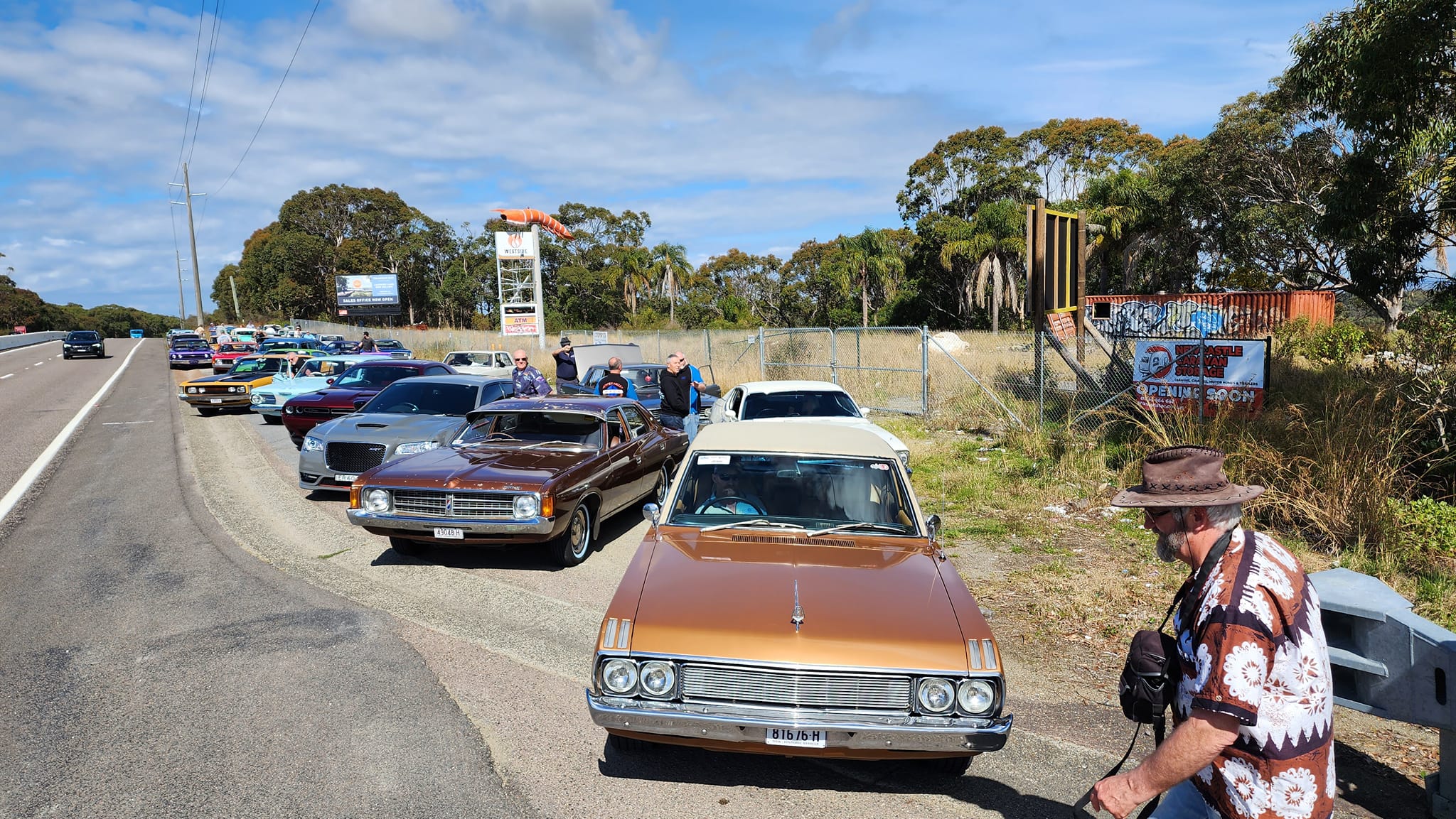 Saturday cruise leaving headless prawn Cars leaving the Headless prawn regroup spot. Wake Run 2023