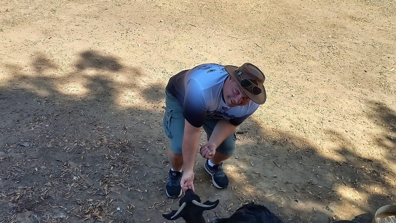 Justin seeing an old friend at Bethanga
